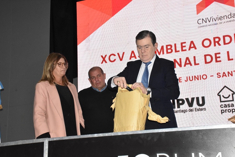 Luego de haber participado de la apertura oficial de la 95° Asamblea del Consejo Nacional de la Vivienda, que se desarrollará este 21 y 22 de junio en el Centro de Convenciones Fórum, se trasladaron a otro de los salones, donde realizaron la apertura de sobres de licitación del programa nacional “Casa Propia Construir Futuro” que prevé la construcción de 978 viviendas. La primera etapa se ejecutará en el barrio San Carlos de La Banda, con 702 unidades.