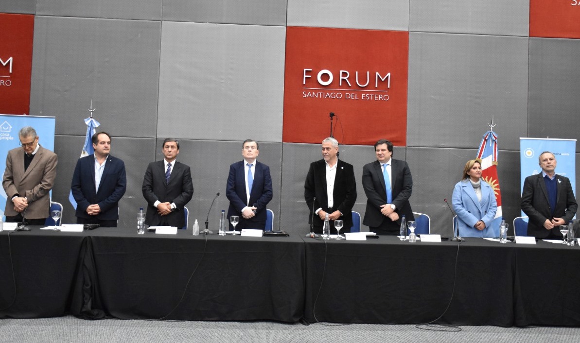 El gobernador Gerardo Zamora, acompañado por el ministro de Desarrollo Territorial y Hábitat de la Nación, Jorge Ferraresi, participó de la apertura de la 95° Asamblea Ordinaria del Consejo Nacional de la Vivienda, realizado este martes en el Fórum.