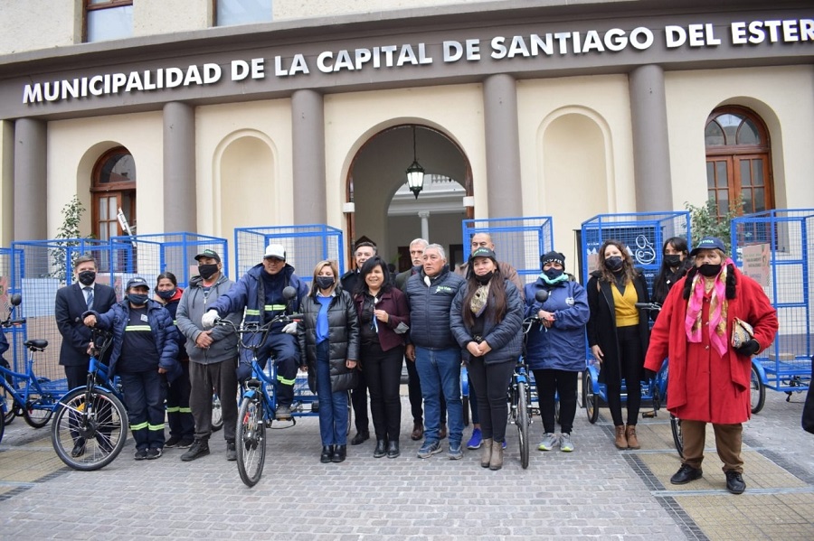 La intendente de la Capital, Ing. Norma Fuentes, encabezó el acto de entrega de diez tricicletas eléctricas a diferentes organizaciones de recuperadores urbanos, que serán destinadas al reciclaje de materiales y residuos sólidos.