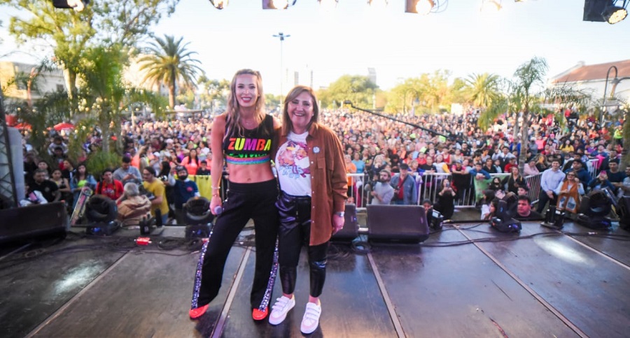 Ante una multitud que participó del Festival Santiago es de Todos, la Intendente Ing. Norma Fuentes, le dio la bienvenida a la bailarina y conductora de TV, Jesica Cirio, invitada por la Municipalidad de la Capital a la Máster Class en el Parque Oeste, en el marco de los festejos por el mes aniversario de la ciudad.