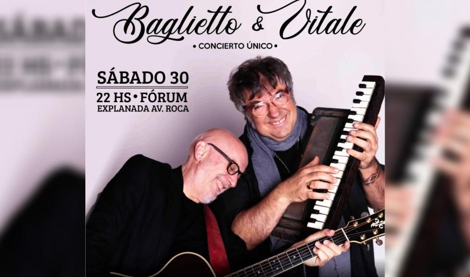 El espectáculo, organizado por la Municipalidad de la Capital, con el nombre de Baglietto & Vitale, dará comienzo a las 22 horas, con un repertorio de sus temas clásicos de los dos reconocidos músicos.