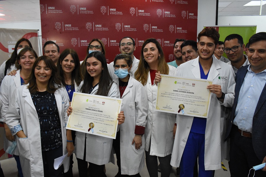 Damián Gómez (Frías); Tamara Bruno (La Banda); Cinthia Toledo (La Banda); Nahuel Ávila (Frías) y Daniel Sequeira (Loreto) aprobaron la Evaluación Clínica Objetiva y Estructurada (ECOE), última instancia de examen y se convirtieron en los primeros médicos y médicas recibidos de la universidad pública santiagueña.