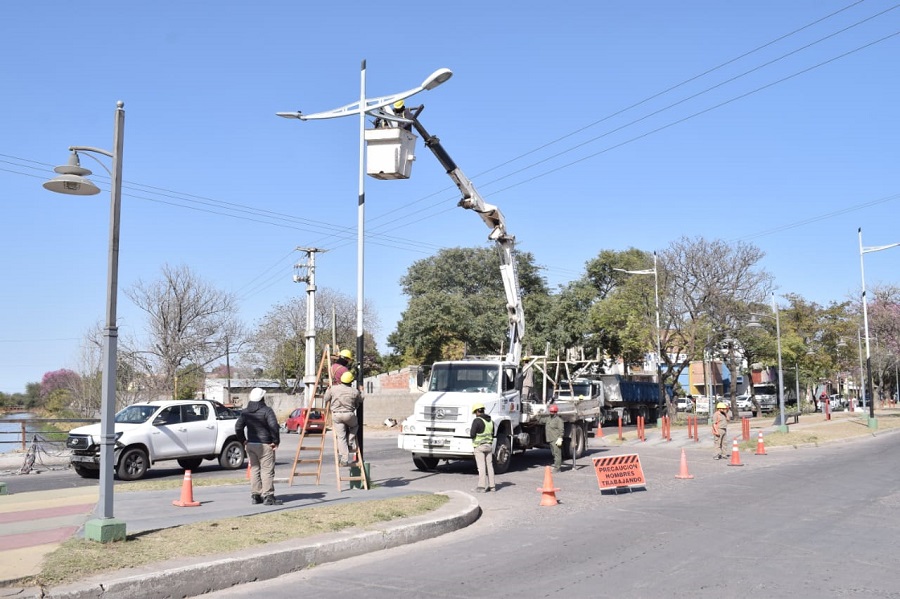 La Municipalidad de la Capital avanza con la refuncionalización del sistema de alumbrado público en el Paseo “25 de Mayo”, el cual será reconvertido al sistema Led para continuar con mejora de la visibilidad en el acceso oeste de la ciudad.