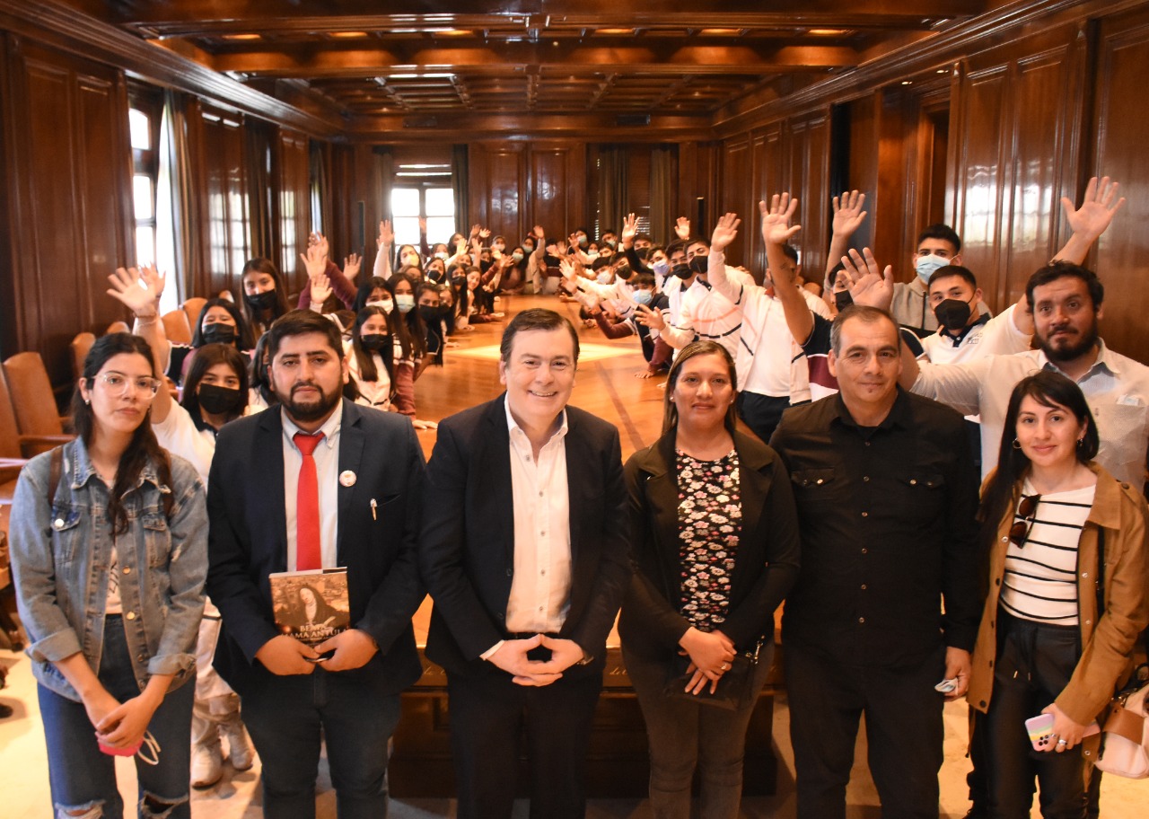 El gobernador Gerardo Zamora recibió este miércoles al mediodía en el Salón de Acuerdos de Casa de Gobierno a 54 alumnos y acompañados por sus docentes del Colegio Agrotécnico N° 2 María Auxiliadora de la localidad de Nueva Esperanza, en el departamento Pellegrini.