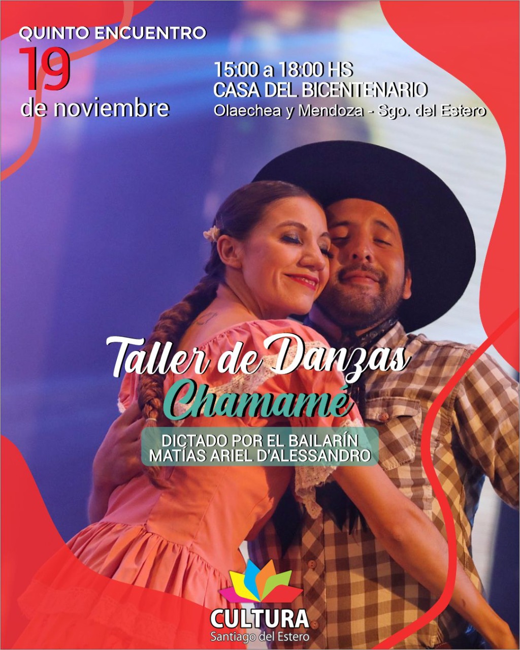 Tras desarrollarse varios encuentros, y con gran aceptación de bailarines y gustosos del género musical chamame. La Subsecretaria de Cultura de la provincia invita a participar del 5° encuentro del Taller en la Casa del Bicentenario, de 15 a 18 horas.