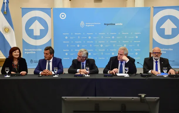 El Gobierno acordó un aumento para los docentes nacionales del 33,5% hasta el mes de julio, en un primer tramo de 17,5% en marzo, 8% en mayo y 8% en julio, durante un encuentro de la mesa paritaria nacional con los cinco gremios del sector, al que asistió el presidente Alberto Fernández y los ministros de Educación, Jaime Perczyk; de Trabajo, Raquel «Kelly» Olmos; y de Economía, Sergio Massa.