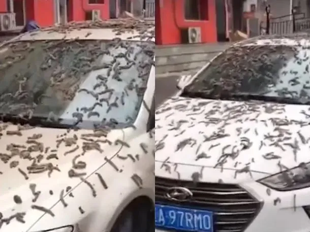 Las imágenes, difundidas principalmente en TikTok, muestran varios autos con sus superficies repletas de lo que aparentan ser gusanos.