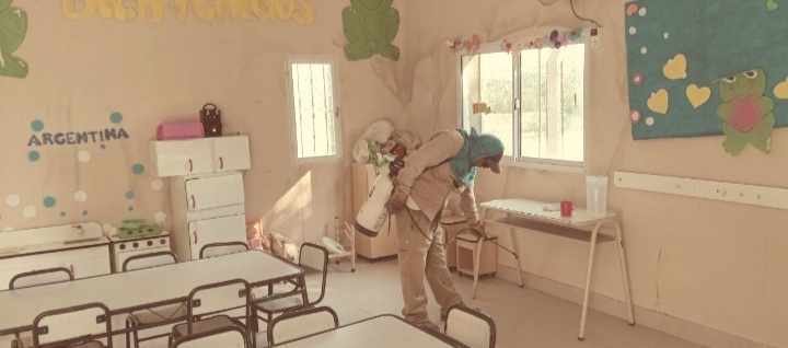 Personal municipal de Garza viene realizando tareas de fumigación y de limpieza en escuelas de la zona, las cuales se extienden de manera sostenida a instituciones educativas de todo el departamento Sarmiento y San Martín.