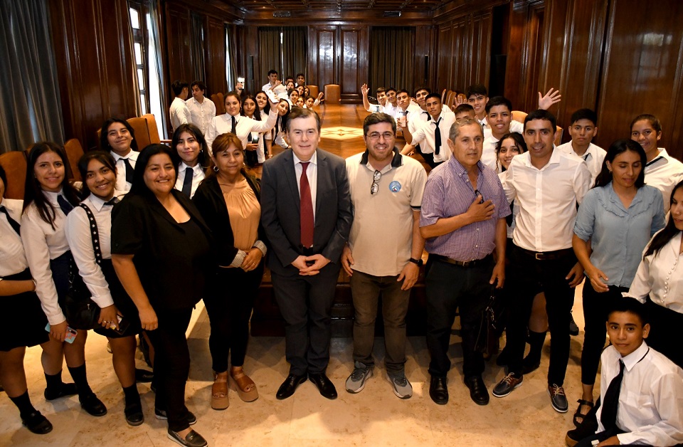 El encuentro tuvo lugar en el salón de acuerdos de Casa de Gobierno, donde los docentes que acompañaban a la delegación expresaron su agradecimiento por el apoyo y el acompañamiento para permitir a los jóvenes del interior vivir esta experiencia de manera totalmente gratuita que “contribuye al proceso de aprendizaje”.
