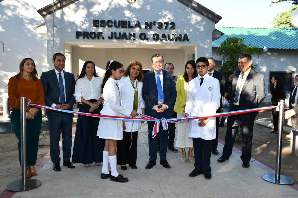 El gobernador Gerardo Zamora visitó este lunes por la mañana la ciudad de Forres, donde habilitó el edificio completamente renovado y ampliaciones de la Escuela N° 972 “Prof. Juan Octavio Gauna”, ocasión en la que anunció la construcción de un espacio cubierto para las actividades de educación física de los alumnos de la institución.