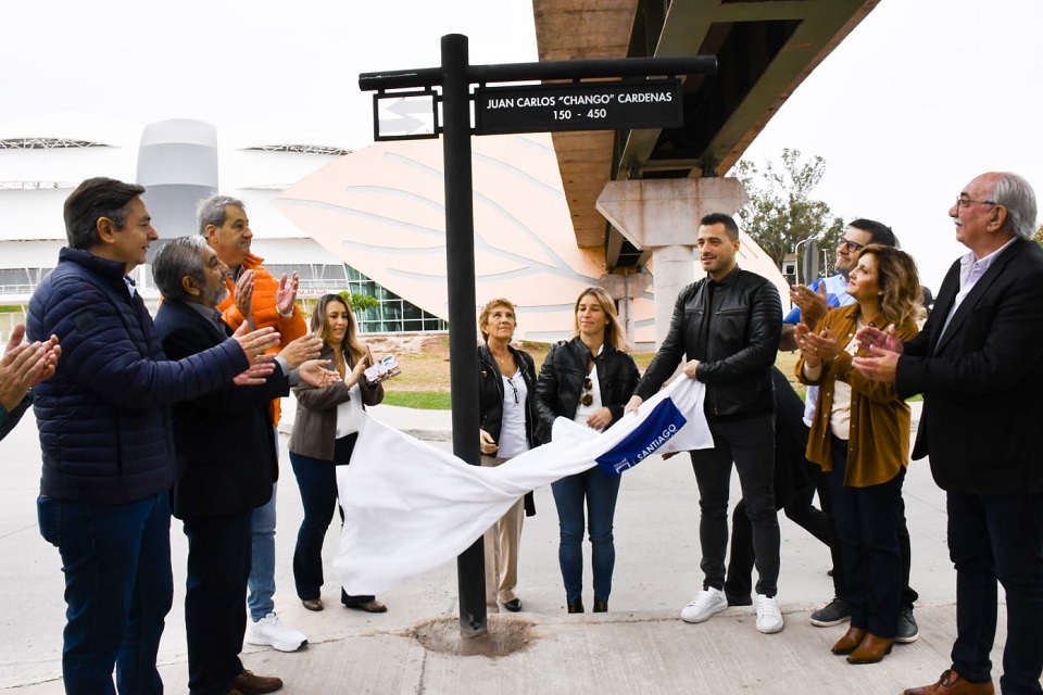 La intendente Ing. Norma Fuentes, el subsecretario de Deportes de la Provincia, Carlos Dapello y familiares del recordado Juan Carlos “Chango” Cárdenas encabezaron la ceremonia donde se impuso el nombre del fallecido futbolista santiagueño a la calle y a la rotonda ubicada frente al Estadio Único “Madre de ciudades”.