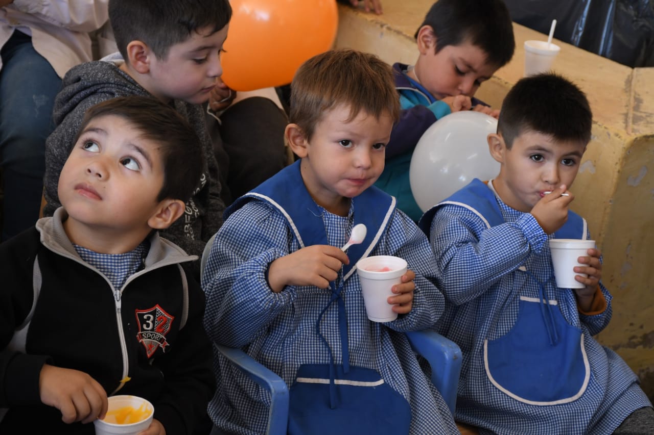 En este marco se hizo la entrega de kits alimentarios a los niños de la escuela primaria y del Jardín de Infantes Anexo N° 88 “Caminito de Colores”.