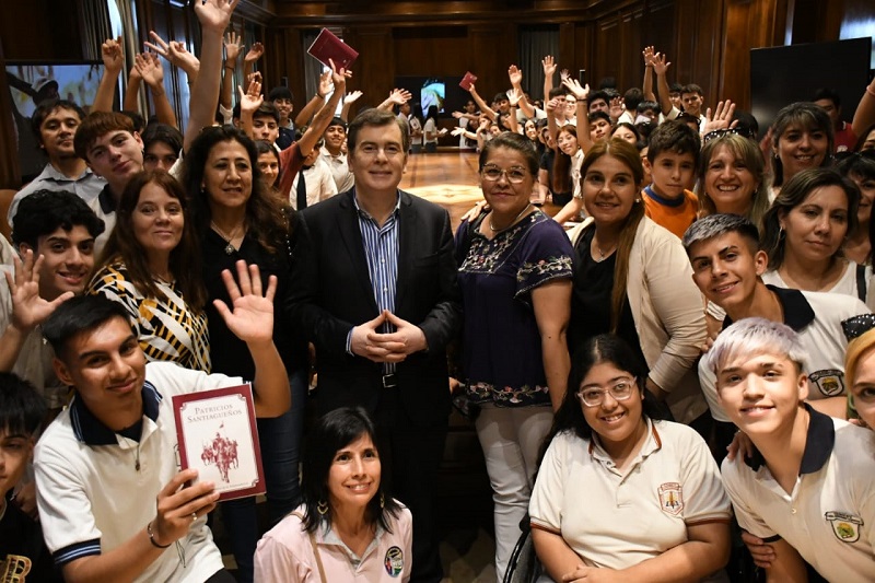El gobernador Gerardo Zamora compartió este miércoles al mediodía un momento especial en Casa de Gobierno con estudiantes de distintos puntos de la provincia.