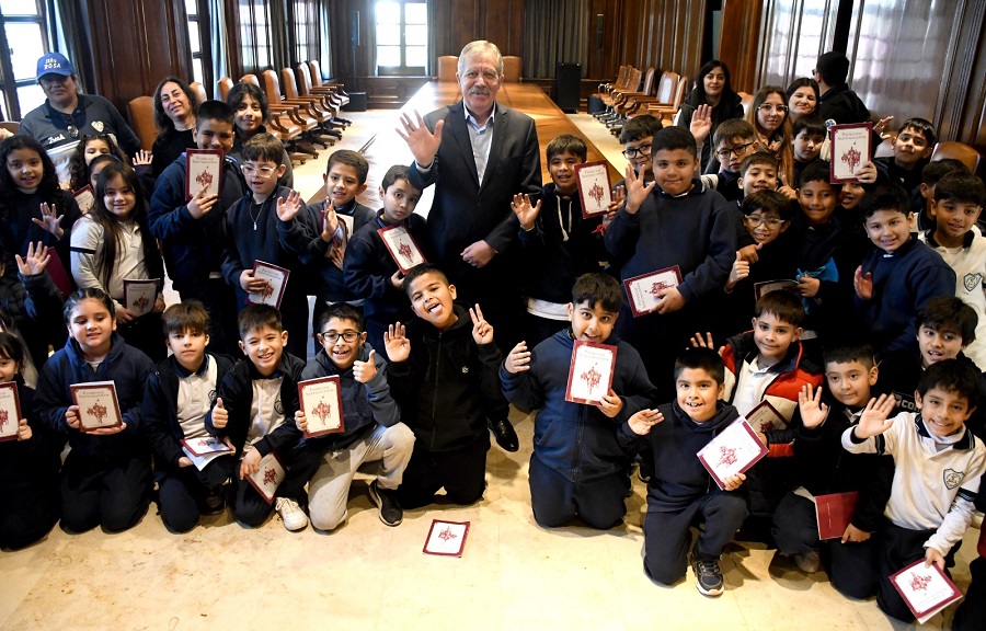 El jefe de Gabinete de ministros, Elías Suárez, en representación del gobernador Gerardo Zamora, recibió este miércoles al mediodía en Casa de Gobierno la visita de alumnos del Colegio Espíritu Santo que se encuentra situado en el Barrio Ejército Argentino de la ciudad Capital.