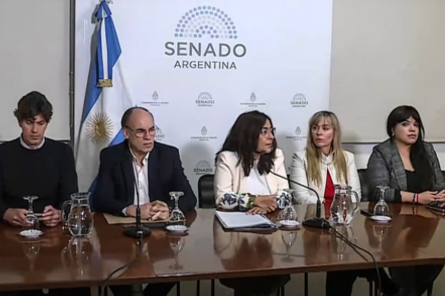 Integrantes de la Comisión de Sistemas, Medios de Comunicación y Libertad de Expresión del Senado realizaron este martes una conferencia de prensa para rechazar las denuncias que presentó el Gobierno de Javier Milei contra periodistas por difundir audios de la secretaria de la Presidencia, Karina Milei, y del extitular de la Agencia Nacional de Discapacidad (ANDIS), Diego Spagnuolo, quien reveló presuntas coimas en el organismo.